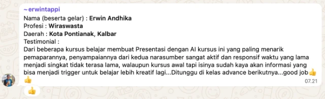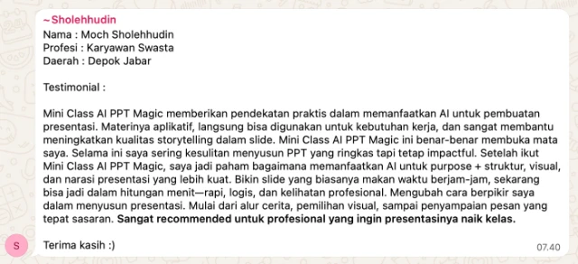 Chat asli dari peserta yang sudah merasakan manfaatnya.